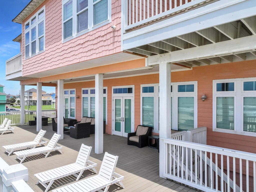 Welcome to this stunning 5 bedroom, 5 1/2 bath beachfront beauty in the Driftwood addition of Crystal Beach. Custom amenities include a true Elevator that goes from the garage to the top floor, quartz countertops, custom cabinetry, and vivid colors. Enjoy a wet bar, game/theater room, and large windows for natural light. The house features a Control4 system, alarm, and cameras for security. Relax on the spacious deck or take in the sunrise with a morning cup of coffee or afternoon beverages. All 5 bedrooms have en suite baths with many custom features. Located near The Big Store for easy access to essentials. This is the perfect dream beach house or investment property with unique touches throughout. Steps away from some of the best fishing on the upper Texas coast as well as seashell, seaglass or shark teeth hunting. Click on the Virtual Tour link below the photos. Motivated Seller!!!