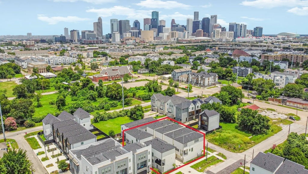 No HOA! prime location just minutes from Downtown, Emancipation Park, dining, shopping, medical centers, and major freeways. Welcome to this stunning, brand-new 3-story single-family home, perfectly crafted for modern urban living with a versatile bedroom and full bath on the entry level make the ideal guest suite or home office. The open-concept main floor is bathed in natural light from floor-to-ceiling windows and flows into a gourmet kitchen featuring quartz countertops, a waterfall island with seating, custom soft-close cabinetry, tile backsplash, stainless steel appliances, and a gas range. Step outside to your private balcony off the kitchen for your morning coffee. On the third floor, the luxurious owner’s suite awaits with double-vanity quartz countertops, a freestanding soaking tub, glass-enclosed shower, and a spacious walk-in closet. An additional en-suite bedroom with ample closet space completes this level. Don’t miss this opportunity—schedule your tour today!