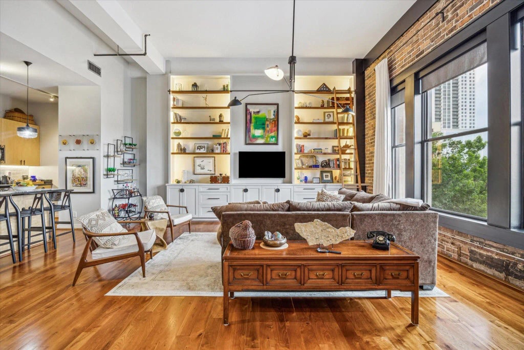 Architectural character meets modern utility in this Downtown loft located at Bayou Lofts, a historic pre-war building converted in 1997. With over 1,360 square feet, this 2BR/2BTH corner unit features exposed brick, immaculate hardwood floors, industrial-style windows, and a lofted secondary bed atop a home office. Kitchen includes granite countertops, stainless appliances, and generous storage. The custom full-wall cabinetry offers sleek, functional design rarely found in loft living. Two assigned parking spaces (a rarity Downtown), 24-hour concierge, fitness center, and a rooftop pool terrace with skyline views. Located in Houston’s historic district, just steps from METRORail, Market Square Park, restaurants, and nightlife. HOA covers water, trash, building insurance, concierge, and more. A balance of cool and convenience for buyers seeking substance, style, and walkability in the city core.