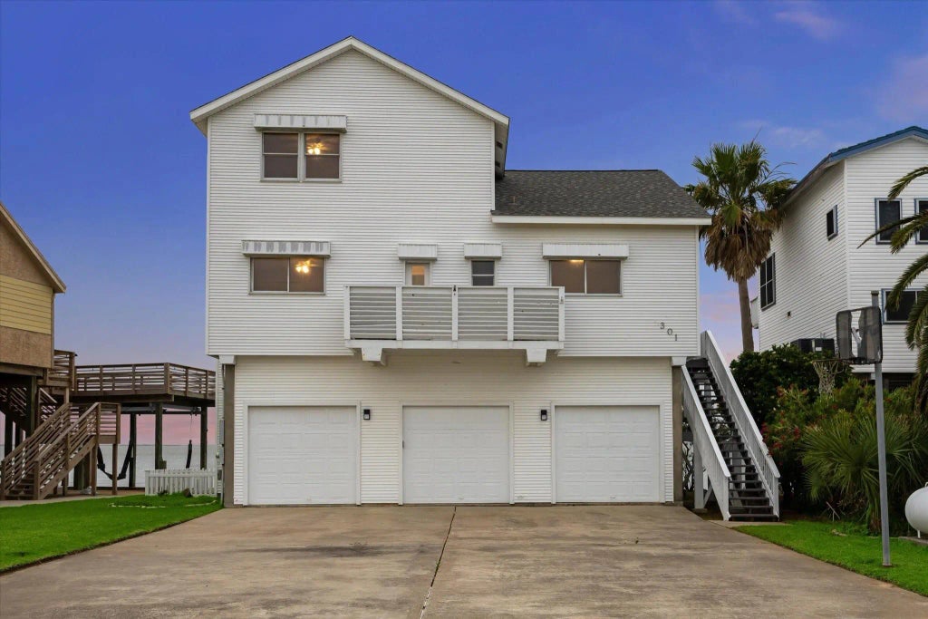 Welcome to this stunning 4-bed, 2-bath bayfront home on Tiki Island! This gorgeous property offers the perfect blend of luxury, comfort & practicality, breathtaking sunset views. Direct access to West Bay, perfect for those who love water & outdoors. Roll-down shutters, wet bar w/ice machine, spacious downstairs designed for hosting, plus a large deck to enjoy the serene surroundings. Elevator to all floors, massive kitchen, updated, reverse osmosis system, granite, cabinets, tile flooring living/dining/kitchen, creating an elegant & contemporary atmosphere. Central vac, whole-house dehumidifier & whole-house surge protector. Sprinkler system & should have room for a pool. 3-car garage, storage & charger for your electric vehicle. This home has been meticulously updated. A prime location, modern amenities & gorgeous sunsets, this property is the perfect retreat for anyone looking to enjoy the best of bayfront living. Don’t miss your chance to own this incredible waterfront property!