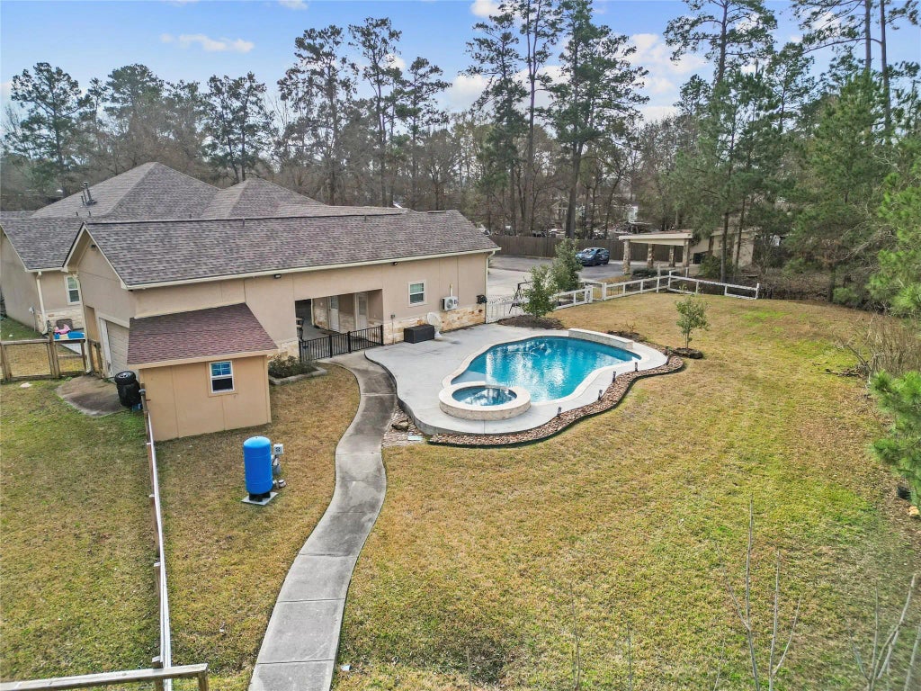 Discover an exceptional 13.71-acre property offering endless possibilities as a family compound or commercial redevelopment opportunity. This unrestricted estate features two duplexes, a custom home, a barndominium, and a warehouse with a heated and cooled workshop. The stunning main home, built in 2014, boasts exquisite architectural details, high ceilings, a gourmet kitchen with stainless steel appliances, and a formal dining area. Enjoy luxury living with a heated pool, a 374-square-foot guest suite, a covered outdoor kitchen, and a serene private water pond. The impressive barndominium, built in 2018, offers 4 bedrooms, 3.5 baths, and an expansive upstairs game room. The property also includes a chicken coop, a sports field, and a spacious open-air workshop. With easy access to Highway 99, I-45, and The Woodlands, this property provides both tranquility and convenience. No HOA and endless potential—schedule your private tour today!