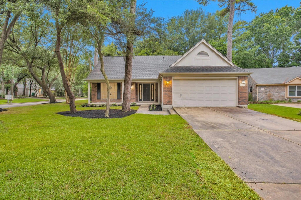 Exquisite 3/2 home in Villages of Grogan's Mill with modern upgrades including porcelain tile, granite countertops, and recessed lighting. Natural light floods the spacious interior, creating a serene ambiance. Enjoy the updated deck and fully fenced yard on a peaceful corner lot in a cul-de-sac. This private oasis offers a perfect retreat.