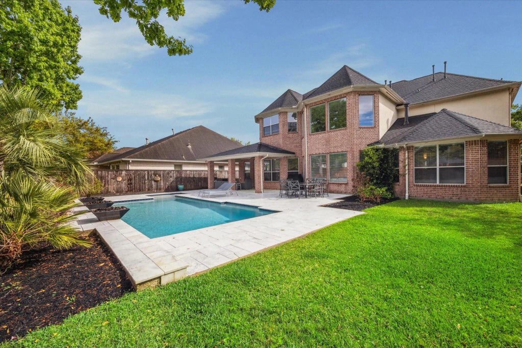 Exceptional Fedrick Harris Estate home in exclusive, amenity-rich community of Royal Oaks Country Club - enjoy resort-style living in 24-hour guard-gated neighborhood. Gracious 2-story brick & stone exterior home with large covered front porch - serene primary ensuite bedroom downstairs + 3 bedrooms up, 3.1 baths, oversize 2-car garage. Many upgrades include recent roof, zoned HVAC, updated baths, carpet on stairway/hallway up/bedroom & game room, some wood flooring & more, Dramatic 2-story family room with fireplace - open to breakfast bar & island kitchen for easy living & casual entertaining. Room for multiple activities with a home office/study, sunroom, large family room + computer alcove & large game room up. Backyard oasis with custom pool & covered terrace for relaxation & socializing throughout the day & into the evening. Amazing storage includes a walk-in 'Texas basement' on 2nd floor & oversize garage with room for your golf cart. A great home & location!
