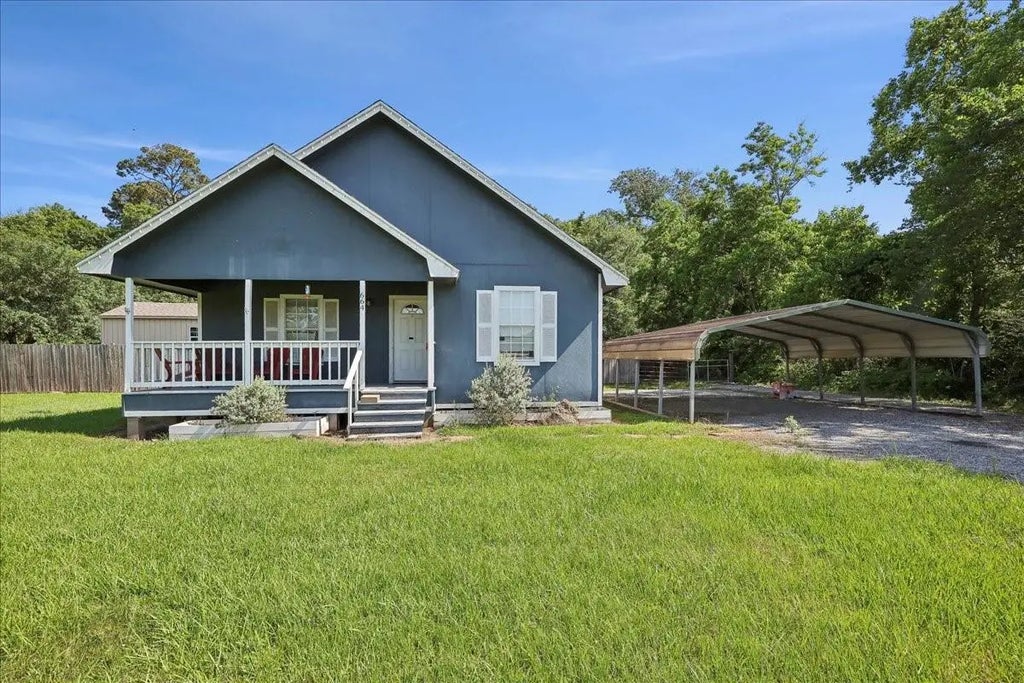 Adorable 3 bed, 2 bath home on over 3/4 of an acre with 1,400+ sqft of living space! Enjoy a spacious open kitchen with granite countertops, large island, and all stainless steel appliances included. Recent updates include a new AC (2023) and water heater (2024), giving you peace of mind. The home features beautiful wood-look flooring, and a cozy front porch perfect for relaxing. Outside, you’ll find a large double carport, fenced area, and plenty of yard space for entertaining or gardening, and a storage shed. Don’t miss this charming, move-in ready home!