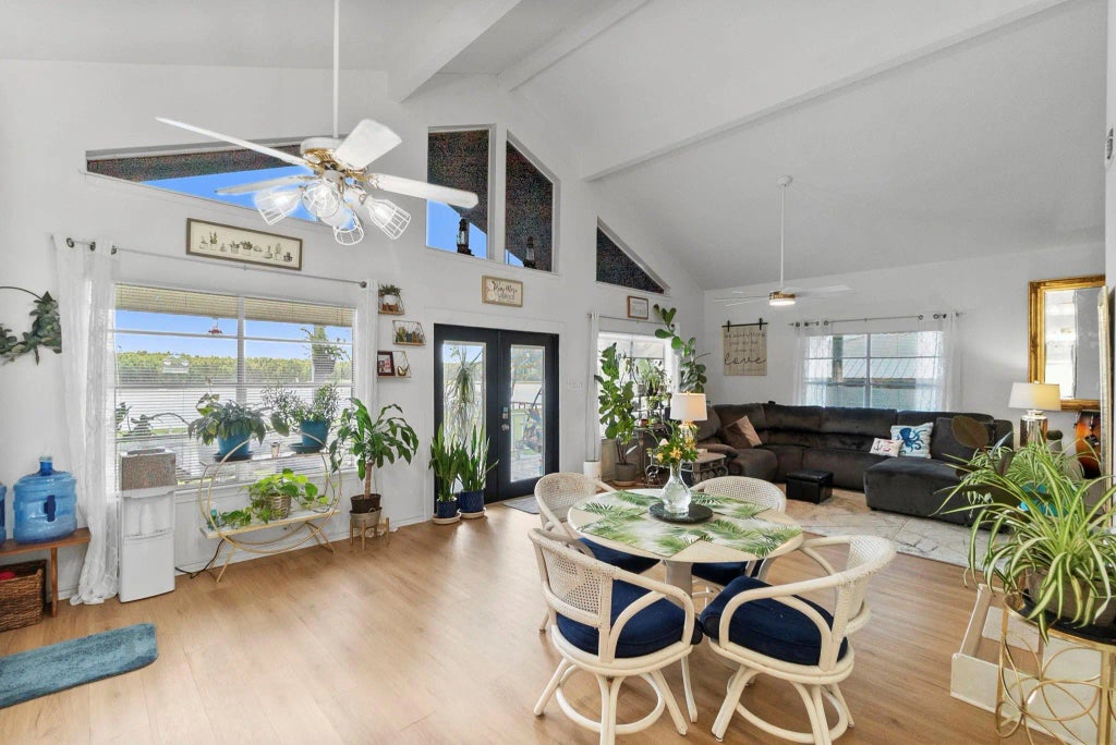 Move in Ready HOME: Discover Lakefront living in this serene retreat on a spacious oversized lot within a gated community. FULLY FURNISHED! This home offers: 3 beds,2 baths, 1,480SF. Recent improvements include new floors, fresh paint, updated lighting, ceiling fans, plumbing fixtures, hardware, new aerobic septic pump, leveled foundation, and a recently serviced HVAC system. Step inside to a bright, open floor plan with soaring ceilings and expansive windows that frame stunning views of Lake Livingston. The wraparound porch invites you to enjoy quiet mornings with coffee. 30/50 amp RV hookup, attached 2-car garage, and a brand-new cement driveway. Subdivision offers: swimming pool, pavilion/picnic tables, a private boat ramp, dock—perfect for fishing, boating, or jet skiing. Low HOA fees and taxes, this property blends lakeside luxury, comfort, and unbeatable value. Located near Trinity, Huntsville, Onalaska and Conroe. Don’t miss your chance to own this slice of “heaven on earth”!