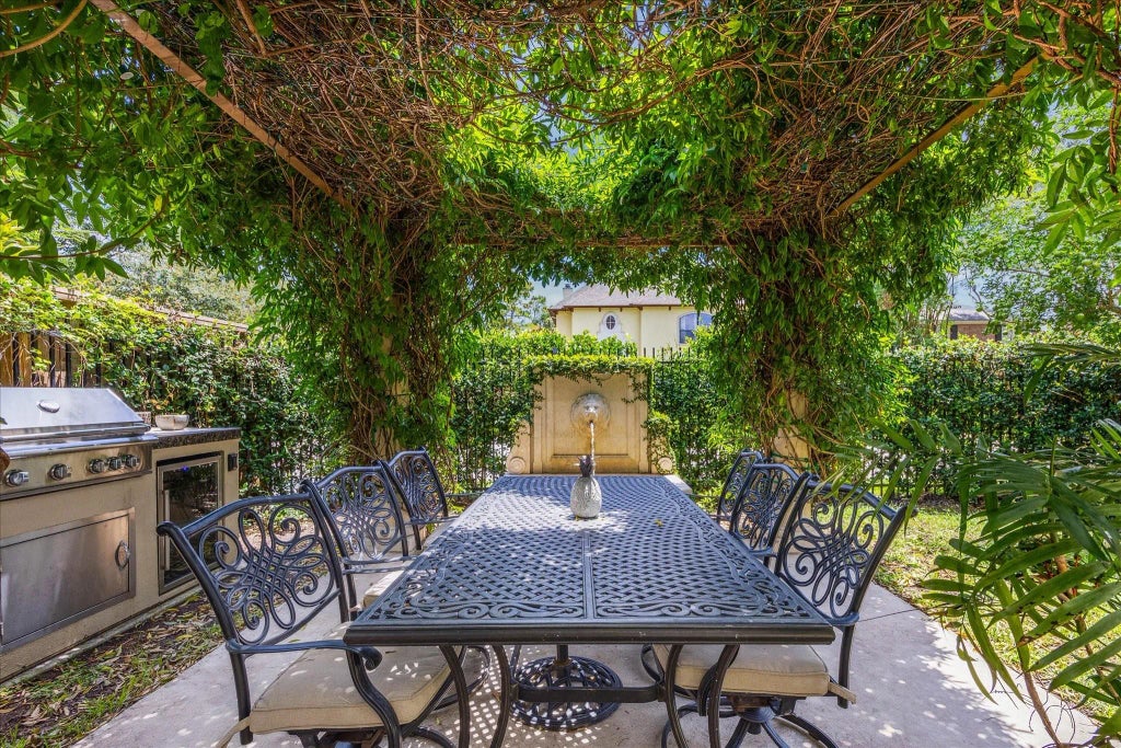 Located behind gates in the prestigious Highland Village area, this beautifully appointed three-story home offers over 4,100 sq ft of elegant living space minutes from River Oaks District shopping and dining. A spacious fenced front yard welcomes you into a formal entry, leading to a light-filled living room with hardwood floors and fireplace, plus a formal dining room. The chef’s island kitchen opens to a comfortable den with built-ins and access to a private deck—ideal for entertaining. The second floor features an impressive primary suite with fireplace, spa-like bath, and walk-in closet, along with additional bedrooms, full baths, and a utility room. The third floor provides flex space with an office, game room/media center, and an additional bedroom and bathroom. Recent updates include the roof, A/C systems, and exterior paint. Enjoy the convenience of an attached two-car garage and additional gated parking, in one of Houston’s most desirable and centrally located neighborhoods.