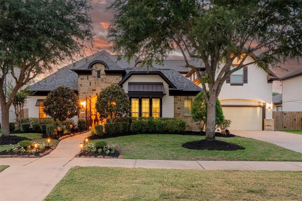 Price Reduced! Nestled in Avalon at Telfair, this Tuscany Model home boasts top FBISD schools. custom Old-Greek style courtyard w/ an in-law suite, travertine tile floor, Tuscany limestone walls. 3-car split garage w/epoxy floors and fresh paint walls, this 2-story stone/stucco property exudes uniqueness. The grand foyer features a custom crystal chandelier, elegant drapes, and curved stairs with iron rod. Engineered wood floors, crown molding, and 8-ft tall doors adorn the first floor. Italian fireplace in the family room, open kitchen has upgraded cabinetry, stainless steel appliances, double ovens, 5-stove cooktop, marble countertop and upgraded tiles. The master suite offers a spa-like bath and spacious sitting area, the study with double French doors. Bose system in Media room. 3-AC, new roof, new fence, designer landscaping, close to Southwest Freeway and highway 6, near city park, dog park, theatre, university and shopping malls. room sizes are approximate.