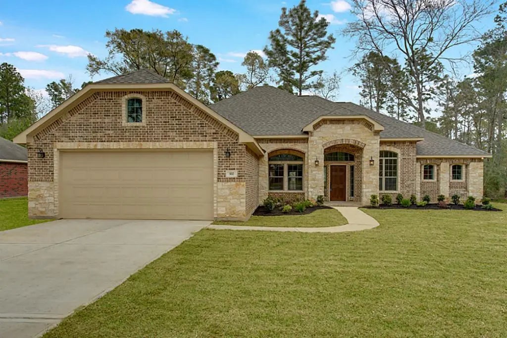 Nestled in the sought-after Westwood neighborhood, this stunning new construction home boasts a beautiful brick and stone elevation on nearly half an acre. The split, open floor plan features a formal dining area, study, and a gourmet island kitchen with site-built cabinets, granite countertops, and stainless steel appliances. The private primary suite includes a spacious shower, whirlpool tub, dual vanities, and a walk-in closet. Custom touches such as tray ceilings, crown molding, and built-ins add elegance throughout. Enjoy the large covered back patio and the convenience of low tax rate and HOA fees. Top-rated Magnolia schools complete this perfect package.