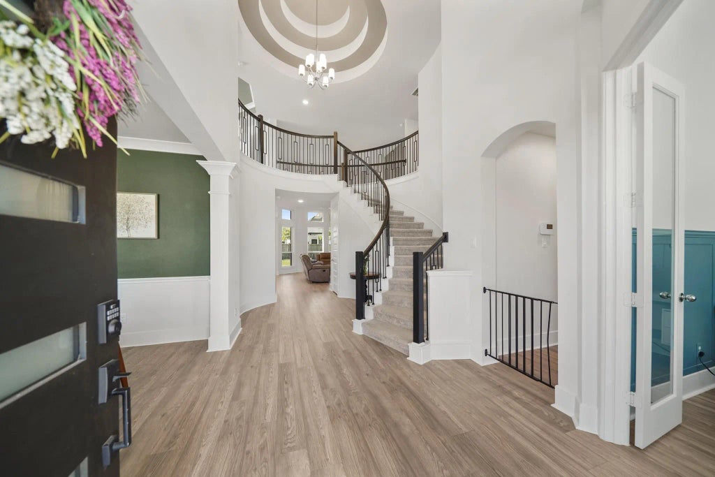 Welcome to this impressive 4-bedroom, 3.5-bath Westin Homes Bellagio II in the desirable Jordan Ranch community. Designed with efficiency in mind, this home is equipped with solar panels that significantly reduce energy costs year-round. A grand spiral staircase, study with custom wainscoting, formal dining with designer touches, and upgraded lighting set a stylish tone. The open living area features a wall of windows and fireplace, flowing into a chef’s kitchen with stainless steel appliances, an oversized island, and ample storage. Upstairs offers a spacious game room and massive media room for entertaining. The oversized primary suite includes dual sinks and a large walk-in closet. Step outside to a generous backyard, perfect for gatherings. Enjoy resort-style amenities with trails, lakes, pool, and community events—all while benefiting from the savings and sustainability of solar living. All the benefits of new construction with an electric bill your neighbors won't believe!