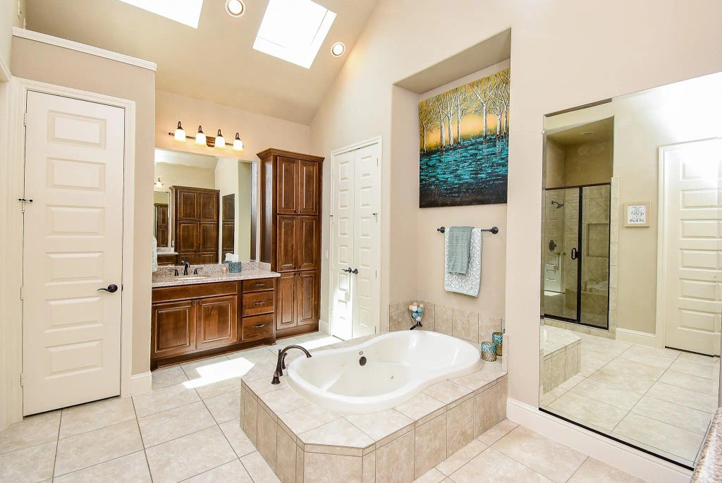 PRICED TO SELL! lUXURIOUS HOME in Desirable Aliana w/Resort-Style Amenities! 3 BEDROOM/3.5 BATHS PLUS STUDY on 10,000SF lot! 3-car tandem garage w/epoxy floors, pegboard wall & workbench! The layout of this home is ideal for guests & multigenerational living. Impressive curb appeal! Inviting entry! Each bedroom has an ensuite bath. Spacious, OPEN kitchen boasts granite counters, double ovens, gas cooktop, SS appliances, breakfast bar & walk-in pantry. Living has fireplace w/cast stone mantle & a wall of windows overlooking a landscaped backyard featuring outdoor kitchen. Private primary suite offers sitting area. Primary bath has 2 walk-in closets with built-ins, jetted tub & separate shower. Woods floors thru-out entry, living, kitchen & dining! Walking trail behind home! Energy-efficient DBL pane windows, radiant barrier, ceiling fans, NEW water heater. Side yard has room for swimming pool! Zoned to highly-rated schools! Near shopping, dining, retail & more. MUST SEE! Never flooded!