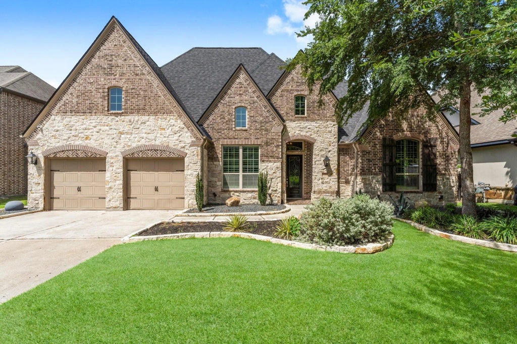 Rare one-story home w/a pool and outdoor kitchen on a cul-de-sac street in the Chaparral Bend section of masterplanned Woodforest. This home offers elegance, comfort, and a seamless indoor-outdoor lifestyle. Features include soaring ceilings, wood flooring, and an open-concept layout filled with natural light. Off the entry, find a private study w/custom built-ins and a formal dining room. The living area features a cozy fireplace and flows into an updated chef’s kitchen w/stainless appliances, upgraded cabinetry, pot filler, a large island and a breakfast nook w/a bar. The spacious primary suite boasts bay windows, tray ceiling, spa-like bath, and a large walk-in closet. Two of the secondary bedrooms have private bathrooms & a flex room in between —ideal for a playroom or game room—& a third secondary with full bath at the front. Step outside to a private oasis with a covered patio, summer kitchen, sparkling pool, and spa—backing to mature trees with no rear neighbors! Montgomery ISD.