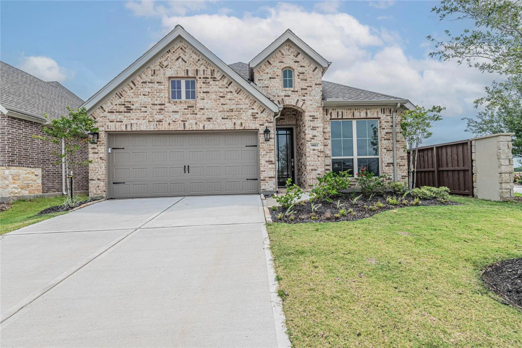 Inviting entryway with home office featuring French doors. Ring doorbell for added security. Smart thermostat, lighting, and recessed lights throughout. Bright family room with ample natural light flowing into kitchen and dining area. Kitchen boasts island with seating, walk-in pantry, and reverse osmosis water filter. Private primary suite with large windows and luxurious bathroom with the shower controls on the opposite side of shower head. Additional bedrooms with walk-in closets. Utility room, covered patio, and mud room off garage. Corner lot with lake view, perfect for relaxing. Enjoy morning coffee or evening drinks overlooking the lake and walking trail. No back neighbors. Landscaped yard with sprinkler system.