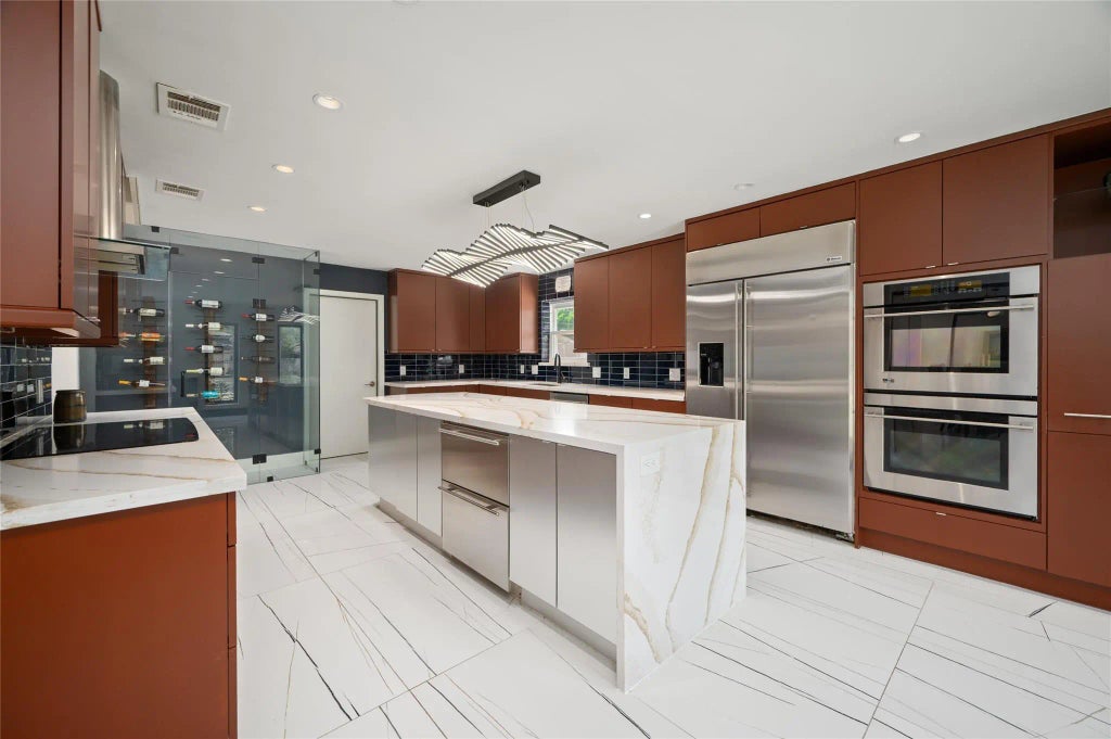 Lovely, remodeled home with contemporary touches in the Thornwood subdivision located in the Energy Corridor on a quiet cul de sac. So many updates done within the last few years. Everything has been renovated. Take in the babbling water feature along the pathway to the front door as you enter the property. Home includes engineered wood floors, quartzite countertops, large kitchen with wine compartment, double drink refrigerator, large built-in refrigerator, contemporary lighting, large primary shower with two shower heads and an handheld wand, walk-in closet in primary with built-in storage, office/study/playroom upstairs, walk-in cedar closet, Jack and Jill bathroom for two of the bedrooms with ensuite in the third bedroom, one AC and furnace replaced last year. Replaced a cast iron service line with PVC last year. Covered patio and outdoor pool for outside recreation. Zoned for SBISD with groceries and restaurants nearby.