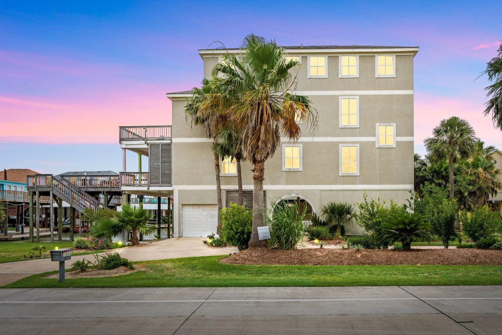 Welcome to 1854 Tiki Drive—an iconic custom-designed waterfront retreat on Tiki Island by acclaimed architect David Watson. This spacious, multi-level home blends architectural elegance with coastal living, featuring soaring ceilings, crown molding, and granite surfaces throughout. The open-concept design flows seamlessly to expansive covered and open decks—perfect for enjoying breathtaking sunsets and salty breezes. The private dock on a wide canal offers direct Gulf access for effortless boating, fishing, and fun. The entire second floor is dedicated to the primary suite, offering enhanced privacy and stunning views. With a new roof (less than a year old), elevator-ready shaft, circular driveway, and generous outdoor living space, this well-appointed home is ready for your next chapter of island life.