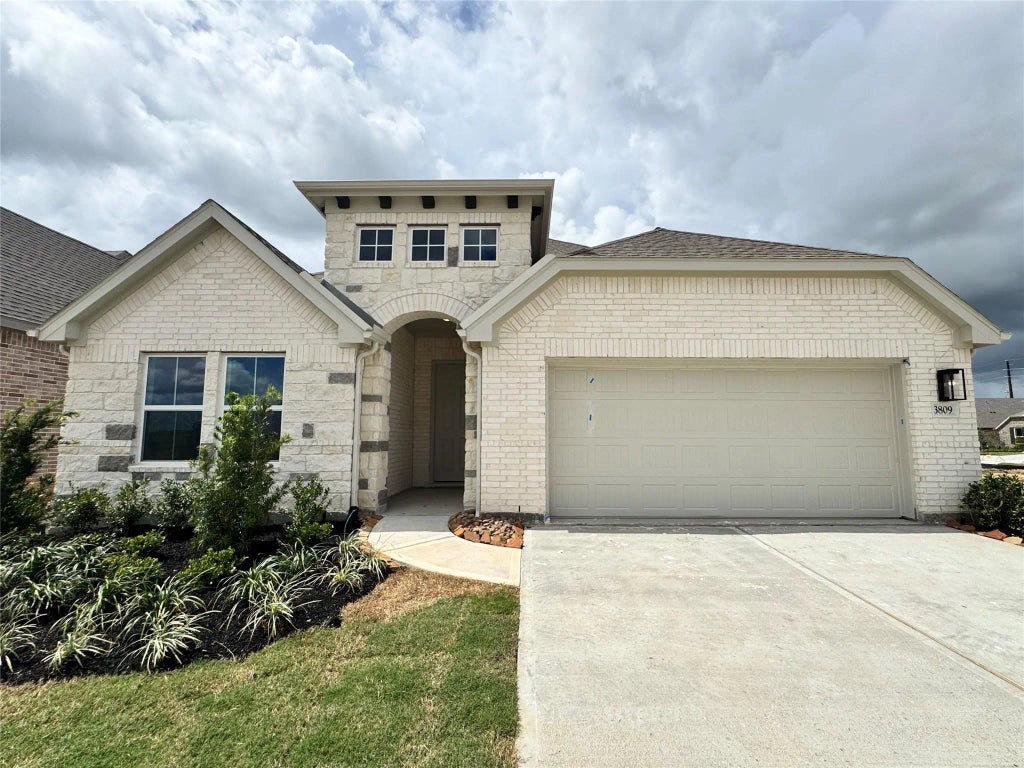 Welcome to Westland Ranch in League City, TX—a stunning master-planned community where modern living meets rustic charm, featuring the Hayloft amenity center with a resort-style pool, playground, courts, and scenic trails! Conveniently located minutes from Galveston, Space Center Houston & Kemah and zoned to top Clear Creek ISD. Welcome to this NEW construction Juniper plan with 4 beds, 3 baths, a study & 2-car garage. Featuring an open layout, the kitchen flows effortlessly into the living and dining area, making it perfect for entertaining. The kitchen comes with stainless steel appliances, custom marvel cabinets & sleek omega stone countertops. The main living areas feature wood flooring, with tile in the wet areas. The luxurious primary suite offers a drop-in tub, walk-in shower, spacious walk-in closet & dual vanities. Enjoy the outdoors with your backyard oasis, featuring sod, a sprinkler system & covered patio. This home is under construction and will be complete September 2025!