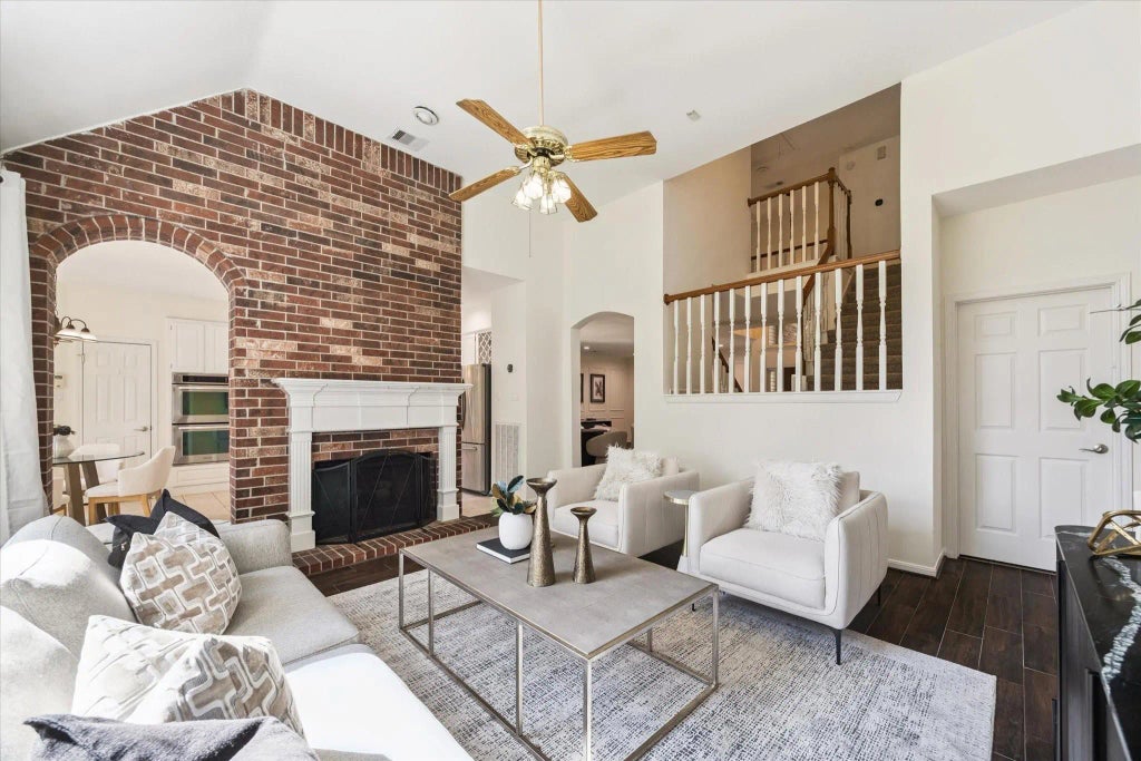 This two-story home features a classic and functional layout, starting with the primary bedroom conveniently located on the first floor. The formal living room seamlessly opens to the dining room, creating a spacious and connected area ideal for gatherings and entertaining. A cozy gas fireplace and double-paned windows enhance the home's appeal and comfort. The spacious kitchen includes a separate breakfast area, overlooking a private backyard that benefits from having no back neighbors. Recent major updates include double-paned windows throughout (2024), a replacement roof installed (2025),a new HVAC condenser and coil (2025), and whole-house paint(2025). The second floor offers three generously sized secondary bedrooms and a full bath, providing plenty of space for family, guests, or a home office. Enjoy the ultimate convenience of being within walking distance of Dickinson Elementary, making school drop-offs a breeze. Schedule your tour today!