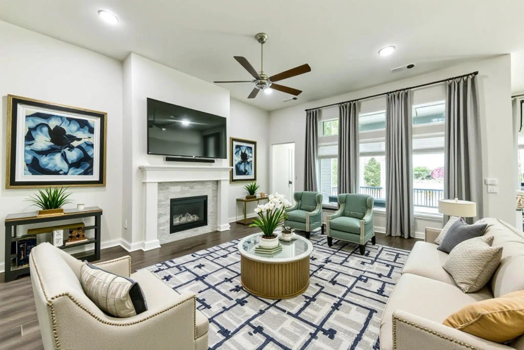 Welcome to 8903 Square View Ln, a beautifully crafted Toll Brothers home tucked inside a quiet, gated section of Lakes at Creekside. Set on a semi-cul-de-sac, this 4-bedroom, 3-bath, 3 car garage home offers over 3100 ft.² of open living space designed for comfort, functionality, and family life. The kitchen features quartz countertops, premium appliances, and a spacious island perfect for busy mornings or weekend gatherings. A private study provides a quiet space for work or reading, while the living area offers warmth and natural light with its cozy gas fireplace. Step outside to the backyard built for both relaxation and connection, complete with a custom pool, spa, fire pit, and extended patio ideal for cookouts, birthday parties, or peaceful evenings under the stars. Home has a home generator and an tandem garage. Located minutes from top-rated schools, scenic trails, and everyday essentials, this home blends luxury and practicality in a setting that feels private yet connected.