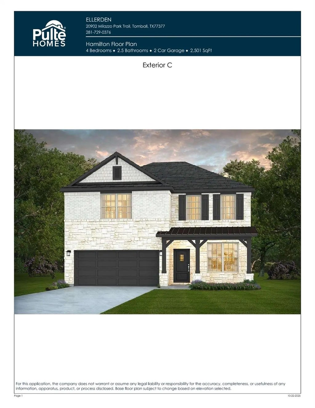 Ready in December! The Hamilton home design in Ellerden by Pulte Homes in Tomball, TX, offers a spacious 4-bedroom, 2.5-bathroom, a dedicated office, and two-story ceilings that display the open floor plan lifestyle. The versatile layout accommodates family gatherings and provides plenty of storage space, featuring two pantries in the kitchen. Features of this home include bay windows in the owner’s suite, a covered patio, stainless steel appliances, and much more. Schedule a tour with us to experience the modern and rich Hamilton floor plan. Ellerden offers a tight-knit community with resort-style amenities, award-winning schools, and easy access to major roads, making it an ideal place to call home.