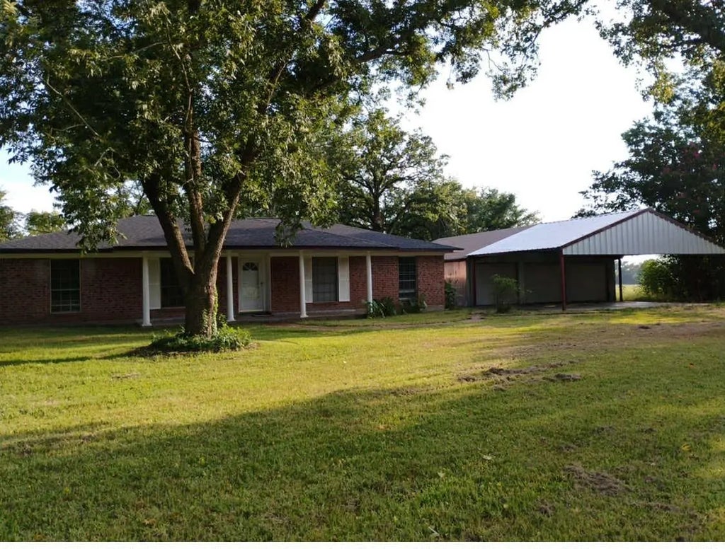 This is a three bedroom, two bath property, on 4 and a half acres, fully fenced. The property has mature pecan, oak, and cedar trees with fenced pastures and a pond for the livestock. There is a fireplace, two living areas, and ample closet space. The master bath has an extra-large walk-in shower. There is a front porch and back patio. The large three car garage/shop with bonus space offers many possibilities. It is located on a paved Farm to Market road and is in the Lovelady ISD.