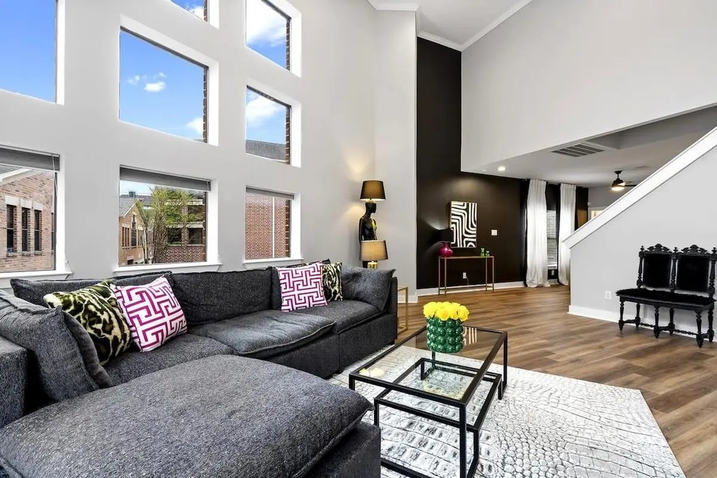 Step into contemporary comfort in this sleek townhome located in the desirable Contemporary Plaza subdivision. The first-floor owner's suite provides a peaceful retreat with a private patio, spacious bathroom featuring dual sinks, a soaking tub, and separate shower. Upstairs, you'll be greeted by a dramatic 30-foot ceiling in the living area—flooded with natural light from expansive windows, creating an open and inviting space. The kitchen, equipped with a gas range and open-concept layout, flows effortlessly into the dining area—perfect for hosting or relaxing at home. On the third floor, generously sized guest bedrooms share a Jack-and-Jill bathroom, offering comfort and privacy. With no HOA restrictions, this property is ideal for long- or short-term rentals, including Airbnb. Conveniently located just minutes from the Medical Center, NRG Stadium, the Houston Zoo, Downtown, and the Galleria—this home offers the ultimate in flexibility and location.