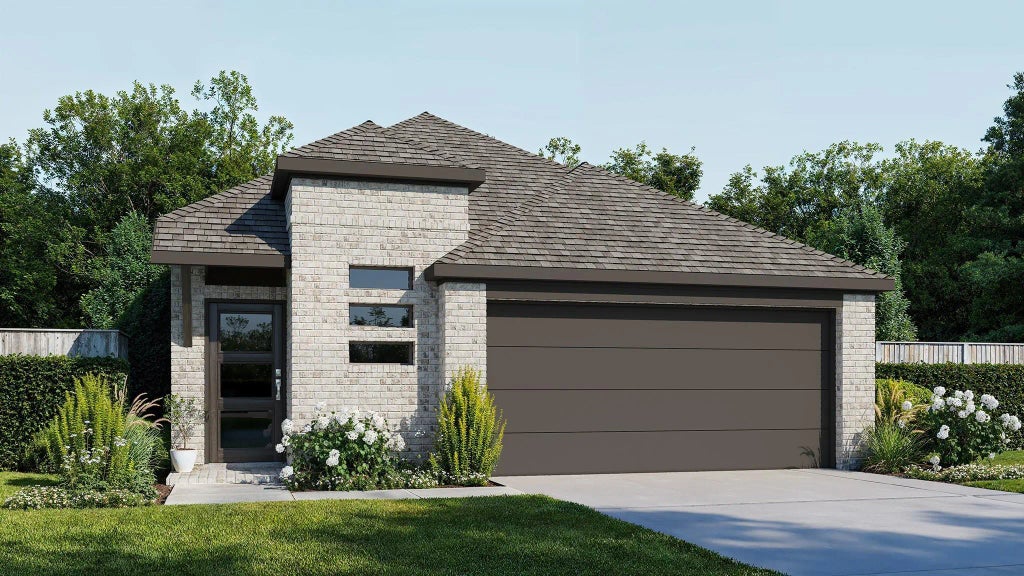 Porch opens to entry with 10-foot ceiling, utility room and mud room. Open family room with three large windows extends to the kitchen and dining area. Island kitchen offers built-in seating space, 5-burner gas cooktop and corner walk-in pantry. Secluded primary suite features large bedroom, dual vanities, glass enclosed shower and a walk-in closet. Secondary bedrooms with walk-in closets, additional bathrooms and two linen closets complete this design. Covered backyard patio. Two-car garage.