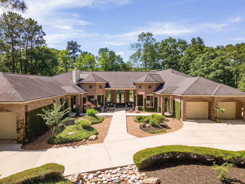 Experience luxury with this sprawling one-story home tucked away on the 9th tee of Lake Windcrest Golf Course. This updated home features 4 bedrooms, 3 full and 2 half baths, a home office, exercise room, and upstairs media room and so much more. The open-concept design includes a chef’s kitchen with quartz counters, high-end appliances, and stylish finishes. Enjoy a resort-style pool, spa, covered patio, manicured landscaping, gated circular drive, and dual two-car garages. The private primary suite offers serene views and elegant touches. Wood-look tile, fresh paint, and modern upgrades elevate the space. Minutes from The Woodlands, Lake Windcrest offers golf, parks, 4 lakes, and walking/riding trails—your private oasis awaits.