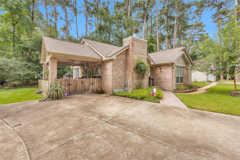 Located in the gated community of Westwood Shores. Charming ALL brick one story house is situated on 2 lots approx 1/2 acre with a oversized 2 car detached garage with additional double wide driveway for extra parking. One car attached carport is a currently being used as a covered side patio. Just steps away from the water with a truly unobstructed view 365 days a year and backs up to the greenbelt for added privacy. Open concept living, kitchen offers granite countertops stainless/black appliances and tile flooring throughout. Wood burning fireplace w/built-in shelves on both sides. Room to store all your toys; boat, RV, Jet skis and utility trailers. Water heater is 2023. Tons of wildlife to view each morning while having your favorite beverage. Amazing neighborhood that offers 18 hole golf course, pools, tennis courts, marina, mini-golf for kiddos, fitness center and a recently renovated golf course. This one is a Gem! Call today to schedule a showing.