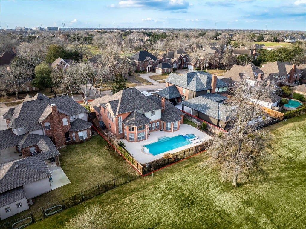 Located in the prestigious Greatwood Shores, this stunning 3,580 sq. ft. two-story home offers five spacious bedrooms (Two beds down and three beds upstairs) along with four full baths. Enjoy ultimate privacy with no back neighbors, as the home backs to a serene green space. The backyard oasis features a sparkling pool and spa, perfect for relaxation and entertaining. Inside, the updated kitchen boasts modern finishes, while hand-scraped wood flooring flows throughout the first floor, adding warmth and elegance. Gameroom located on the second floor provides a great gathering space. Four bedrooms up with lots of storage and closet space. A two-year-old roof and numerous beautiful updates, this home is a true gem in a highly sought-after community. Don't miss this exceptional opportunity!