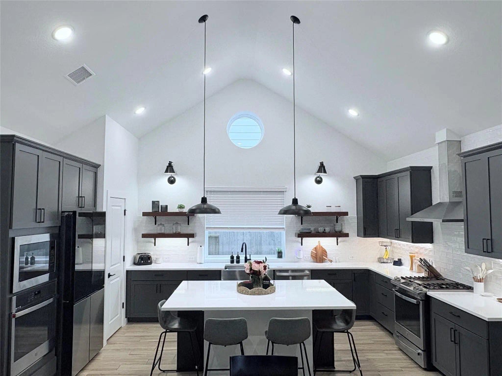 Come check out this open concept design with Soaring ceilings creating a spacious and airy feel. Two en-suites on the first floor, primary suite offers dual vanities, sizeable walk in closet and large double head shower. Second en-suite bedroom is perfect for guest or flexible living. Family room features a cozy fireplace ideal for gatherings or relaxing evenings. The kitchen is a standout equipped with a large island, double ovens, stainless steel appliances, quartz countertops tall cabinetry with soft closed features throughout. Upstairs provides a spacious loft plus three additional bedrooms and two full bathrooms. The backyard is spacious and features a covered patio great for entertaining or enjoying outdoors. Parking includes a 3 car tandem attached garage offering ample storage and parking space. The home also offer a backup power supply outlet power by portable generator of your choice during times of emergency weather events.