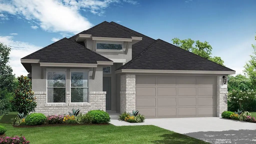 Welcome to this stunning single-story home in The Meadows at Imperial Oaks, boasting a modern brick and stucco board exterior. This thoughtfully designed home offers 3 bedrooms, 3 bathrooms, and a spacious flex space. Perfect as a study or game room. The gourmet kitchen is a chef's dream, featuring built-in stainless-steel appliances, 42-inch cabinets, quartz countertops, and an oversized island overlooking the family and casual dining rooms. Luxury vinyl plank flooring enhances the main living areas, blending practicality with sophistication. Retreat to the luxurious primary suite, complete with an elegant bowed window, a relaxing tub, and a separate shower. Step outside to enjoy the Texas sized covered patio, perfect for outdoor entertaining. Come visit today!
