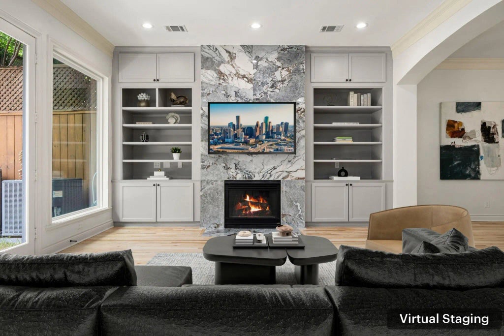 Experience elevated living in this fully reimagined Upper Kirby showstopper. Every inch of this designer-renovated home has been curated for modern elegance, featuring sleek custom cabinetry, quartz countertops, gold-accented hardware, upscale lighting & wide-plank premium flooring throughout. The open-concept layout centers around a showstopping marble fireplace & walls of windows that bathe the living & dining areas in natural light. The chef-inspired kitchen stuns w/ SS appliances, gas island cooktop, butler’s pantry, wine fridge, cozy breakfast area & built-in study nook. Retreat to a luxe primary suite offering a spa-like bath w/ freestanding tub, frameless glass shower, dual vanities & a dream-worthy custom closet. Two oversized secondary bedrooms each include private en-suites—perfect for guests, work-from-home or play. Fresh paint, new windows, new roof & modern fixtures top off this down-to-the-studs renovation. Minutes to Greenway Plaza, Museum District & world-class dining.
