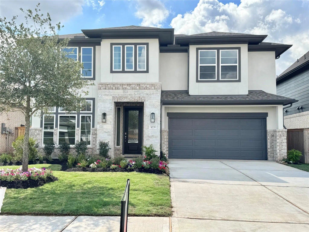 Fabulous 2-story plan by Newmark, the Vienna, features 4 bedrooms, 3 .5 baths and a 2 car garage. Beautiful 20 ft ceilings in the family room add to the attractive and beautiful large family room windows. Stunning 8 ft door as you enter the home and striking tile floors flow throughout the common areas with a 50 in. electric fireplace. Main suite features a large built in tub and separate shower, double vanities with upgraded counters, and upgrade hardware showcasing a modern feel. Open kitchen reveals stunning porcelain tile countertops and upgraded tile backsplash giving the home that extra stylish appeal. Home also comes with a game room with a media off of the area. Huge, covered patio included as well as sprinklers front and back. Modern features throughout this home spark the pickiest buyer's taste.