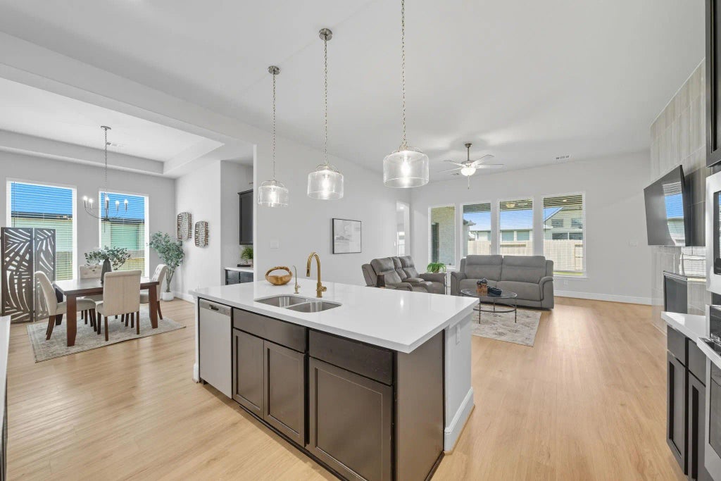 This beautiful single-story home in the desirable Coastal Point neighborhood offers contemporary living at its finest. Spanning 2,820 square feet, this residence boasts four spacious bedrooms and three full bathrooms, providing ample space for comfort and privacy. The gourmet kitchen is a chef's dream, featuring stainless steel appliances, a large center island perfect for meal prep or casual dining, and a gas range cooktop. The expansive primary suite offers a tranquil retreat with an ensuite bathroom designed for ultimate relaxation, complete with his and hers sink areas and ample storage. Outdoors, a generous covered patio provides an ideal setting for entertaining or simply enjoying cool evenings in the small private backyard. The front of the home overlooks a large retention pond on the other side of the street. Schedule your private tour today!