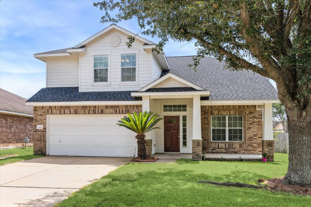 Spacious and open concept 4-bedroom, 2.5-bath home nestled on a premium corner lot in the desirable Willow Falls community! The versatile layout offers flexibility with a large formal dining area that can easily serve as a formal living/dining combo. The eat-in kitchen features NEW SS appliances & flows seamlessly into the inviting family room, complete with a cozy gas log fireplace. Beautiful engineered wood floors throughout, fresh neutral paint & elevated ceilings! Primary Suite includes bath w/dual sinks, separate soaking tub & shower, and his & hers walk-in closets. Three generously sized secondary bdrms & an additional full bath. Highlights include a convenient half bath on main floor & private oversized backyard oasis. Roof replaced in 2016. Enjoy evening strolls along neighborhood sidewalks to the community park. LOW HOA & TAXES, prime location near TX-99 & Hwy 249, you're just minutes from shopping, dining, and easy commuting. Don’t miss out on this this move-in-ready home!