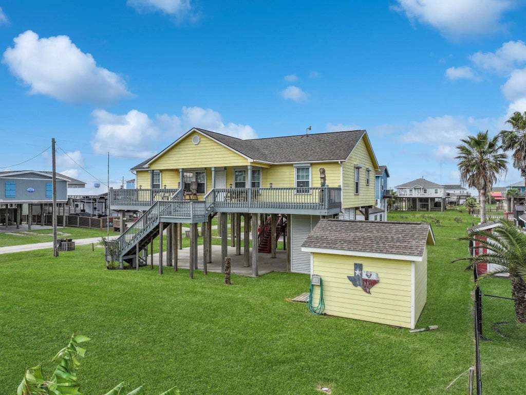 Nestled on two spacious lots totaling 9,000 SF, this charming 3-bedroom beach retreat in the heart of Crystal Beach is brimming with potential! Whether you’re dreaming of a serene seaside home or a lucrative rental investment, this property delivers. Just a short stroll from the sandy shores, local restaurants, and grocery stores, the home features an inviting open floor plan with soaring ceilings in the living area and kitchen—perfect for gatherings or relaxed coastal living. Outside, the expansive yard offers ample space for outdoor fun, complemented by a garage and storage shed filled with included extras. Fully furnished and turnkey, this property is ready for you to move in or start hosting guests immediately. With storm shutters installed on every window and door, you can enjoy peace of mind and security no matter the weather. Don’t miss your chance to own this slice of paradise!