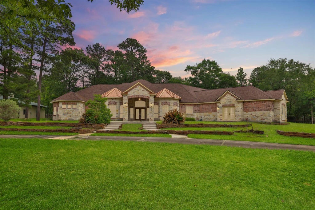 Nestled on 2.04 +/- acres, this expansive single-story home provides a blank slate for your own personalization. With ensuite baths in secondary bedrooms, a spacious Primary Suite boasting his and hers closets, a jetted tub, and walk-in shower. Options include a formal living room or game room, a well-appointed home office, and a chef's kitchen featuring double ovens, granite counters, convection microwave, and walk-in pantry. Outside, a covered patio awaits outdoor furniture, while the vast backyard offers endless possibilities. Embrace the opportunity to tailor this property to your tastes and make it your own!