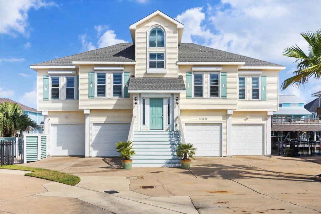 This luxurious coastal home in Tiki Island has been completely redesigned to offer everything you’re looking for. The open floor plan offers spacious bedrooms & a space for a home office on the main level & flex room upstairs with bathroom & walk-in closet. The Primary Suite boasts 3 closets, waterfront views & a spacious ensuite bathroom. Beadboard ceilings, beams, detailed molding, & custom cabinetry throughout the home adds to the elegant design. Outside you will find 118' of concrete bulkhead, an oversized boathouse with 2 boat lifts & slips with bumper guards, & a retractable ladder, plus a heated pool, palapa, tiki bar, 4 garages with one used as a workshop with half-bath, 150-gallon bait well, stainless fish cleaning table with sink & a lift to the second level deck that stretches across the whole back of the home. Upgraded windows with plantation shutters & remote control shades plus exterior electric storm shutters are just a few additional upgrades. Ask for the complete list!