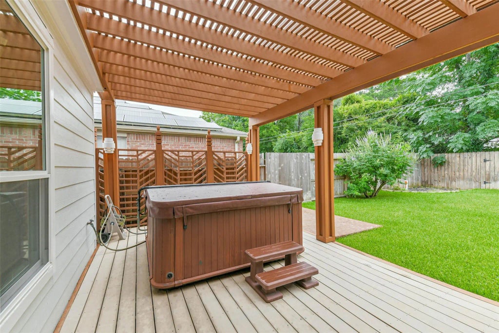 Welcome to this charming home, 2- story brick house, beautifully designed with spacious comfort in mind. This residence offers a versatile game room, perfect for entertainment or a cozy retreat. The open concept living area flows effortlessly into the formal dining, ideal for gathering with family and friends. Nice island kitchen, plenty of counter space and like new appliances included. Upstairs, you’ll find generously sized bedrooms, each filled with lots of light, while the primary suite boasts a private en-suite bathroom for added luxury, a large walk-in closet and a walk out 2nd floor patio/ deck set for indoor outdoor living. Step outside to a large backyard –with a screened in patio deck/ sunroom with an adjoining spa tub included- your own private oasis, ready for barbecues, gardening, or creating your dream outdoor living space. Well maintained like new, recent roof, water heater, HVAC system. Easy access to Grand Pkwy Toll (99) and close to Target and other stores!