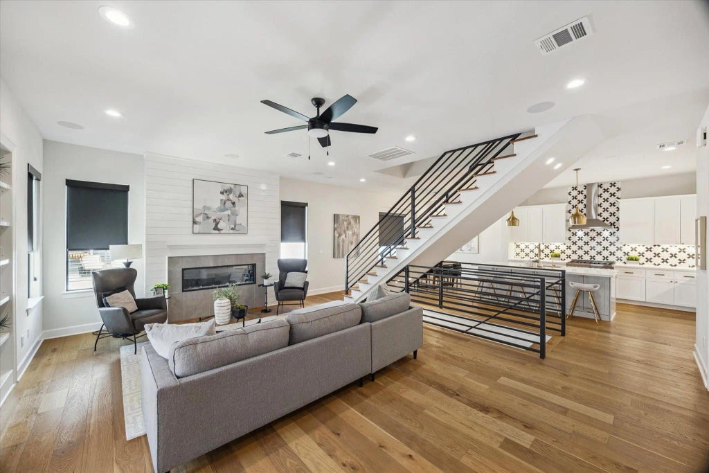 Welcome to this stunning corner home in the heart of Garden Oaks! This newer-construction, free-standing residence is filled with natural light and offers an open, modern layout. The 1st floor features a versatile room that can serve as a bedroom or home office, complete with a walk-in closet and spacious ensuite bath. It opens to a beautifully turfed yard — perfect for relaxing or entertaining on cool evenings. The home also includes a whole-home generator and reverse osmosis. Upstairs, the 2nd floor boasts open-concept living with defined spaces anchored by a striking stairwell. The living area includes a built-in dry bar with a wine fridge, an electric fireplace, and access to a covered balcony. On the 3rd floor, you’ll find the primary suite and an additional guest suite — each with its own ensuite bath. The home has no carpet, offers ample storage, and is truly move-in ready. Located in a gated community, you’ll enjoy being just moments from breweries, restaurants, and shopping.