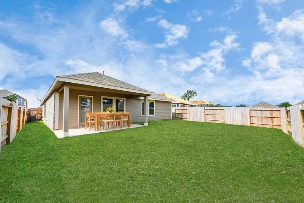 Welcome to this charming single-story home with a modern kitchen, spacious center island, and cozy breakfast area. Enjoy evenings on the covered patio, and bask in the natural light of the primary suite with a private entrance, walk-in closet, and luxurious tub/shower combo. Secondary bedrooms are generously sized and conveniently located. Located in a vibrant community with amenities such as a splash pad, playground, park, and walking trails. Short commute to the Woodlands shopping centers. Don't miss the opportunity to tour this lovely home! Take a tour today! Verify all Room measurements. Photos have some virtually staged pictures.
