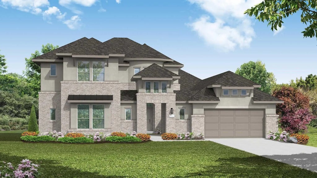 Welcome to this stunning home, featuring a charming front courtyard that invites you in with its warmth & elegance. Step inside to discover the coveted reverse staircase, which adds a breathtaking touch to the entryway, making a striking first impression. Bowed windows in both the dining & primary suite, filling the spaces with natural light & delightful views. The layout includes a dedicated study, game room & media room, offering versatile spaces for work & play. This home seamlessly combines luxury & functionality, perfect for both entertaining & everyday living. Don’t miss the opportunity to call this remarkable home your own!
