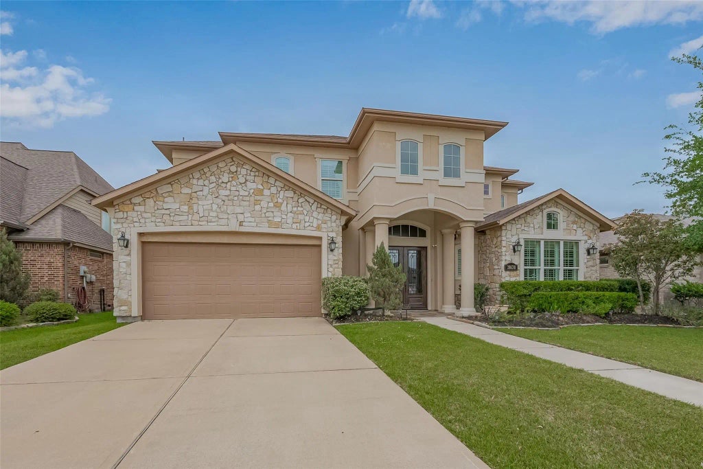 Stunning Former Model Home with Lake View, Soaring Ceilings & Luxury Upgrades! Located next to the clubhouse in a prime community, this elegant 4,989 sq ft stucco home offers 5 spacious bedrooms, 4 full baths, and 2 half baths. Step through the grand double-door entry into a space featuring soaring ceilings, high-end finishes, and countless upgrades. Highlights include a gourmet kitchen with designer appliances, a spacious outdoor kitchen, a large movie room, and a private balcony with peaceful lake views. Enjoy added privacy with no back neighbor. This former model home blends luxury, comfort, and an unbeatable location—your dream home awaits!