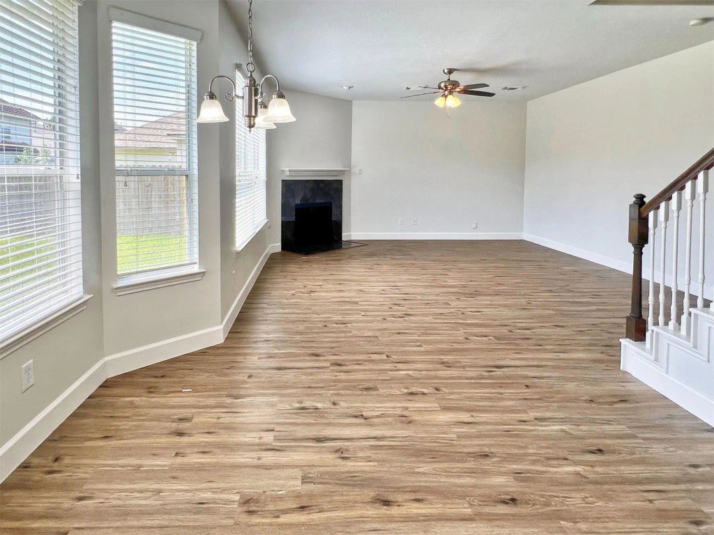 Beautifully remodeled and move-in ready 4BR/2.5BA in Rodeo Palms! This spacious floor plan features formal living and dining rooms, a family room, breakfast area, and a large backyard patio perfect for entertaining. Upstairs offers all four bedrooms including an oversized primary suite with remodeled bath and huge walk-in closet, plus three generous secondary bedrooms and a full bath. The entire upstairs boasts brand-new carpet. Downstairs features new flooring and stunning oak wood stairs. Recent upgrades include a new roof (Aug 2024), fresh paint throughout, updated bathrooms, a new fence (2025), and new stainless steel kitchen appliances. Filled with natural light and modern touches, this home is conveniently located near Texas Medical Center (~20 miles), Pearland Town Center, schools, and Hwy 288 for easy commuting.