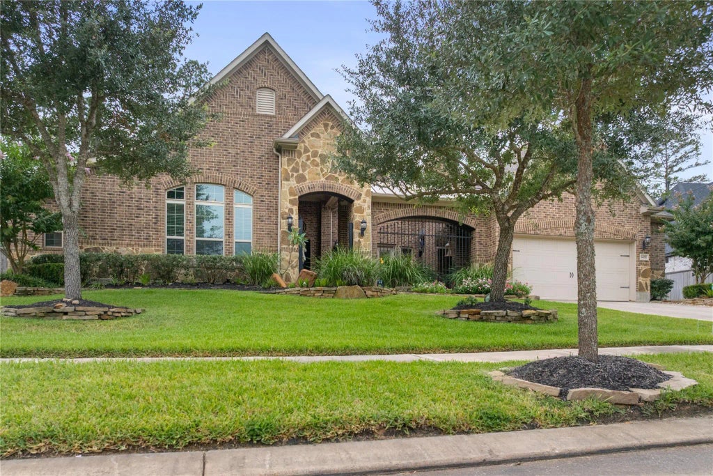 This exquisite J. Patrick Home in Woodtrace features over 70,000 in upgrades, including a gated courtyard with fireplace, upgraded wood look tile flooring throughout, granite countertops, upgraded fixtures, 2” faux wood blinds, study with French doors, media room with surround sound, extended covered patio with fireplace, and 3-car tandem garage. The gourmet kitchen is ideal for entertaining with stainless steel farmhouse sink, double oven, pull-out cabinet drawers, under cabinet lighting, and butler’s pantry with wine cooler. The master suite offers bay windows, walk-in closet, dual vanities, whirlpool tub, and walk-in shower. Heos sound system, exterior security cameras front and back, built-ins in garage, water softener and reverse osmosis, built-ins in living room. Enjoy community amenities like a pool, clubhouse, greenbelt trails, lake, and boat launch. Furniture and TVs are negotiable.