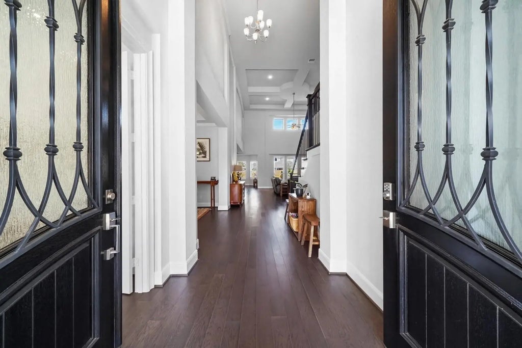 This stunning 2-story home in desirable Smooth Stream offers 2 bedrooms down! Featuring double front doors, soaring ceilings, wood floors, custom shutters, & an open floor plan, this lightly lived-in beauty exudes elegance. A French-doored study, formal dining room w/ tray ceiling,& butler’s pantry. The chef’s kitchen boasts ample cabinets, SS appliances, granite counters, gas cooktop, island, bar seating, & breakfast nook. The spacious family room is highlighted by a curved wall of windows, a stone fireplace + two-story ceiling. Primary suite includes cozy sitting area, walk-in shower, dual vanities, & his/her closets w/ built-ins. Upstairs, find 2 large bedrooms, a game room, & state of the art media room. Garage w/epoxy floors, storage units, & EV charger, utility w/sink, custom cabinets in MUD room. Outdoors, enjoy covered patio + kitchen w/ grill, sink, & fridge. Additional perks include a whole-home generator, water filtration system + much more-must see feature list!