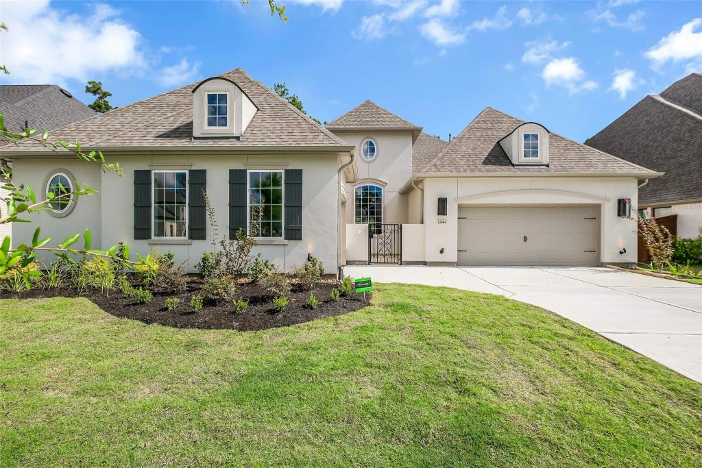 Shea Homes New Construction, 12932 Whitewater Way- Plan 6015 B Fall completion, 3600 sq ft 1 1/2 story-4 bedrooms, 3 full, 2 half bath, stucco Exterior. Courtyard at entrance with wrought iron gate. Bay window in primary, tray ceilings, entry, and dining rooms. 2 primary bedrooms, kitchen with double oven, quartz, and granite. 12" sliding door leads to a large patio with a fireplace. Family area with fireplace and cedar ceiling beams, freestanding tub in primary, laundry with sink and cabinet, full gutters, bonus room with a half bath upstairs.