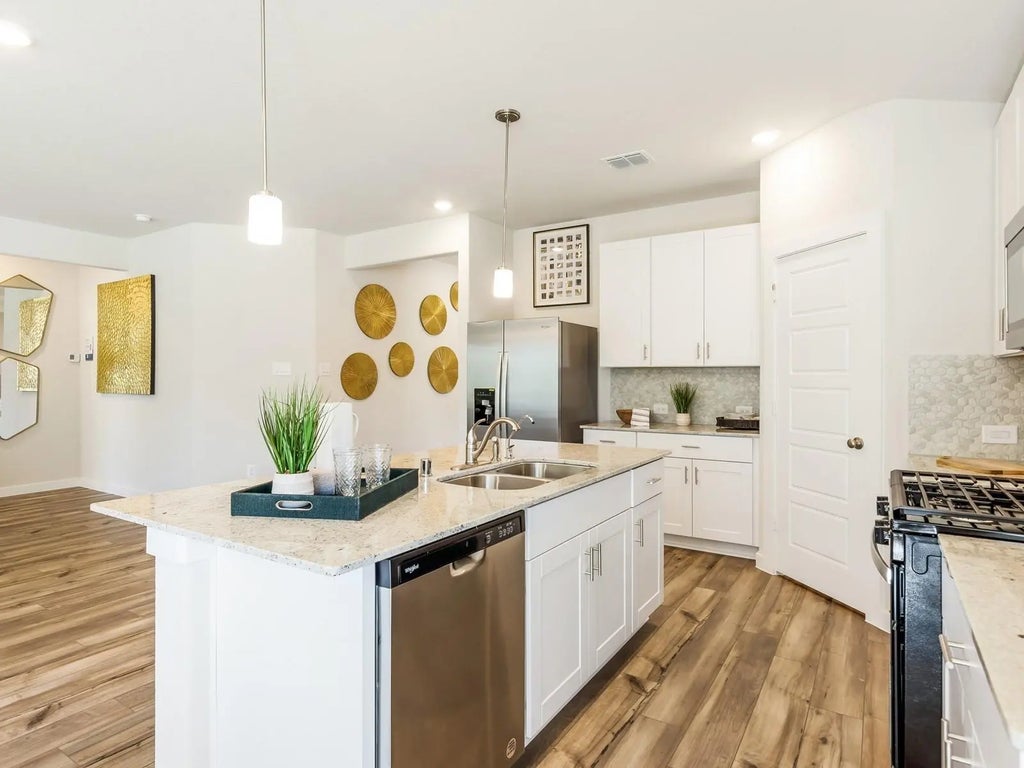 Brand new, energy-efficient home available by Sep 2025! Debate what to wear in the Preston's impressive walk-in closet located just off the primary suite bath. White cabinets with white quartz countertops and grey hexagon backsplash, light brown EVP flooring and multi-tone carpet. From the low $300s. Located off SH-336 in Conroe with premier access to I-45, Stewart’s Ranch makes it easy to work and play. Let the kids run at the future playground and pavilion or explore the nearby 201- acre Carl Barton Jr. park. We also build each home with innovative, energy-efficient features that cut down on utility bills so you can afford to do more living.* Each of our homes is built with innovative, energy-efficient features designed to help you enjoy more savings, better health, real comfort and peace of mind.