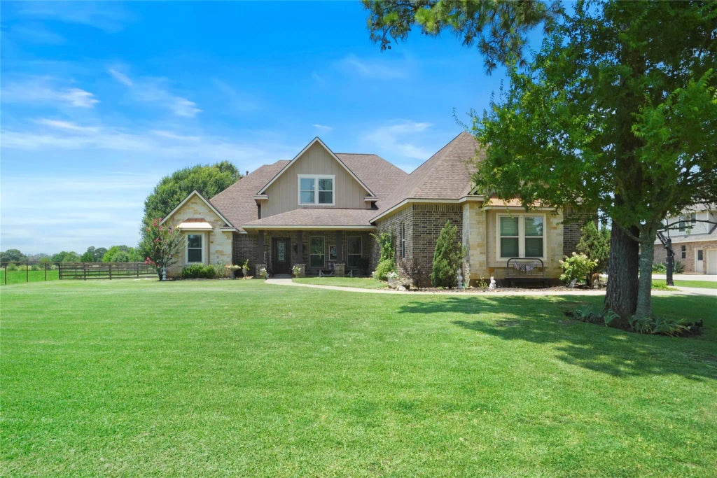 This versatile custom home sits on a cul-de-sac next to a private 50 acre ranch in the heart of Montgomery ISD. As you enter through the charming front porch you are greeted by beautiful wood floors flowing throughout the dining and living rooms. The kitchen features granite countertops with stone backsplash and opens into the breakfast area and the additional family room. The primary suite boasts a sitting area with a view of the backyard and flows into a spacious primary bath anchored by an large walk-in closet. Two secondary bedrooms share a jack n jill bathroom. Upstairs leads to the game room with plenty of room for toys for kids or adults. Off the game room lies another bedroom and full bath. As amazing as the interior is, you will not want to leave the outdoor area! A covered back porch offers plenty of shade to watch friends and family cool off in the pool or enjoy the hot tub. The fenced backyard leaves plenty of room to play. Come make 5112 E. Settler's Bend home!
