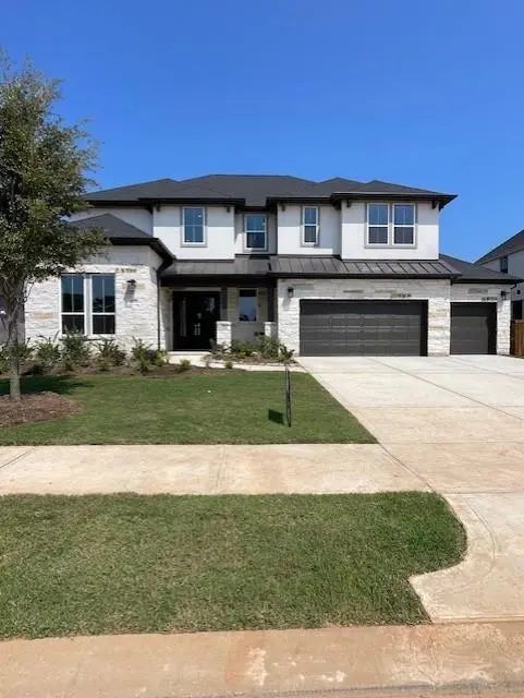Experience this elegant two-story Windsor home with a grand curved staircase and soaring ceilings. The open-concept design includes a chef-inspired kitchen featuring GE appliances, Groveland MDF Extra White cabinetry, and Lumataj quartz countertops, with a large central island and walk-in pantry. It seamlessly connects to the great room. Additional highlights include a mud room, laundry room, and spacious 4-bay garage. The primary suite offers dual vanities, a free-standing tub, and a large walk-in closet. Upstairs, enjoy the game room and media room, or relax on the extended covered patio.