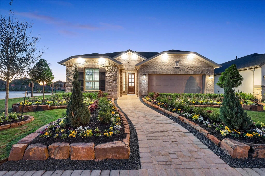 The Sherwood Plan is going to wow your family and friends upon entry in its wide foyer. Here is your chance to own this massive 2 bedroom home with an engaging flex space in the center of the home. Downsizing would never be an issue with the huge walk in closets. The covered patio provides a peaceful outdoor retreat and a great place to entertain. Bonterra is a master-planned community designed for today’s 55+ home buyers who are ready to take advantage of the lifestyle that’s possible with resort style living. Bonterra’s amenities, include a 10,000 square foot community Clubhouse with fitness center, spa, gameroom, lagoon style pool, pickleball courts and more. Structural options added include: extended covered patio, outdoor fireplace, Texas basement #2, bay window in primary bedroom, sliding glass door, gourmet kitchen 2.